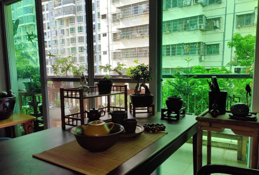 楼上阳台养花垂钓