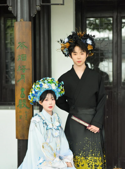在汉服的日常穿着中,可以加入一些养花的仪式感,如在衣襟处绣上“养花”字样,或在衣袖上绣上花卉图案,表达对生活的热爱与细心。汉服与养花的结合活动