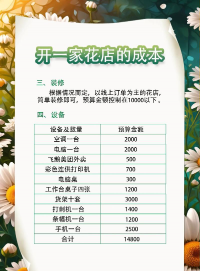 - 花市摊位:适合短期销售,利润波动大。