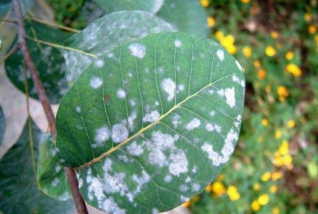 白粉病主要危害叶片。发病初期,感病叶片上产生白色针尖状斑点,逐渐扩大形成近圆形斑。病斑周围呈放射状,至后期病斑连成片,叶面上布满了白粉。受白粉病危害的叶片组织褪绿,影响叶片的光合作用,使叶片干枯早落。秋季叶片上逐渐形成黄色至黄褐色,最后变黑褐色的颗粒状物,为病原菌的闭囊壳。