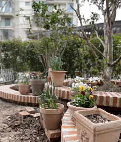 红砖花园阳台养花
