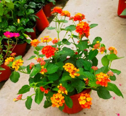 用不同颜色的花盆装花,让植物“换脸”,增加观赏性。