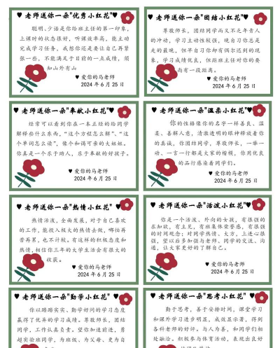 “你在养花过程中能够与同学合作,共同照顾植物,展现了良好的团队合作精神和集体意识。”