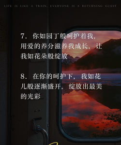 养花如爱人,寓意着用心照料、耐心呵护。以下是一些与养花相关的诗句,既有诗意,又蕴含着对植物的关爱:“春种一粒粟,秋收万颗子。” —— 李绅《悯农》寓意:像对待亲人一样精心培育花草,期待丰收的喜悦。“栽花栽草,莫忘初心。” —— 俗语强调养花