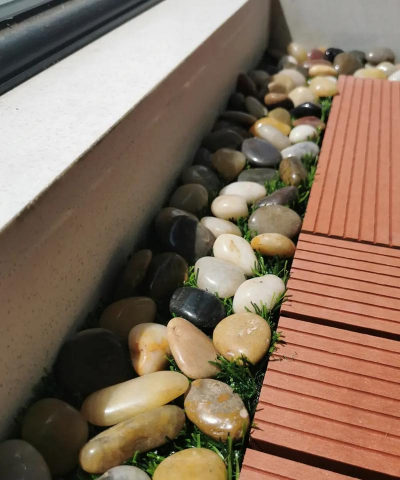 - 阳台花盆:在花盆边缘铺石子,增加美观度。