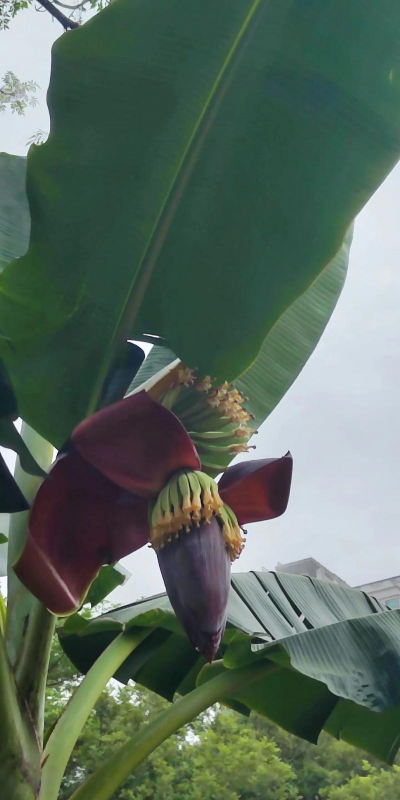 - 香蕉树开花后,果实会逐渐成熟,若未成熟可及时采摘。