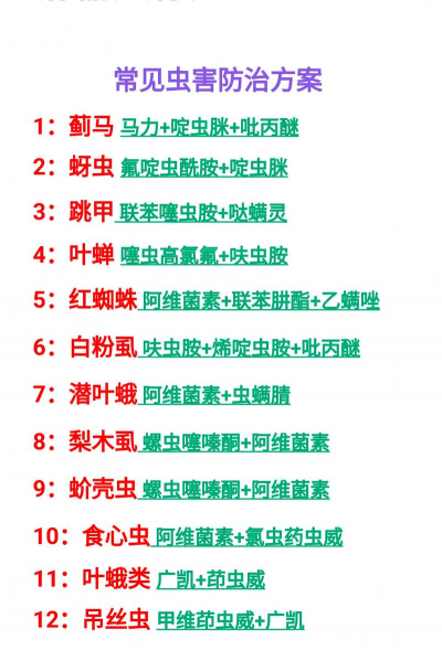 药剂防治喷洒50%久效磷1000倍,40%氧化乐果1000倍,或50%杀螟松800倍等,每隔1周喷1次,连续3-4次。杀螟松、氧化乐果、久效磷3种药剂2种或3种可混用。混用方法:甲1份加乙1份,再加2000份水或甲乙丙各1份加3000份水。混用比单用效果好,对植物更加安全。