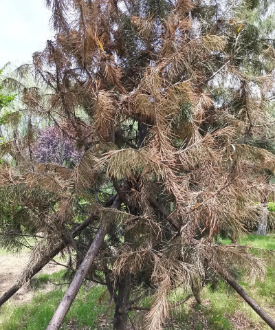 松根朽病是我国林区常见病害,它能侵染多种阔叶树和针叶树,引起根部腐烂,在东北地区主要危害红松和落叶松,华北地区主要危害杨树、柳树和果树,在西南地区主要危害华山松等。