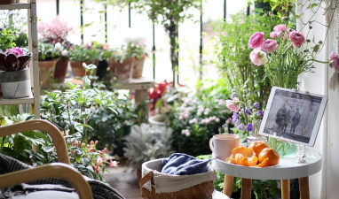 阳台养花关照不知