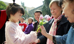 孩子陪老人养花