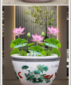 客厅瓷鱼缸养花