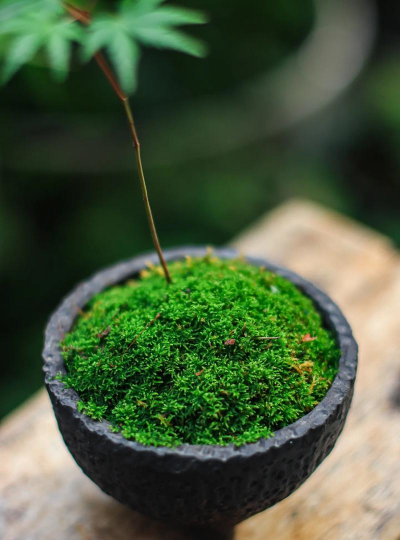 青苔喜欢阴凉、湿润、通风良好的环境,通常生长在湿润的土壤中。在盆景中,青苔一般种植在盆底或盆缘,形成自然的绿意。