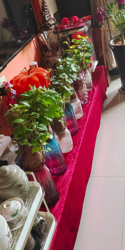 将红薯切碎后,加入水浸泡,过滤后可制成液肥,浇灌花苗,提供养分。