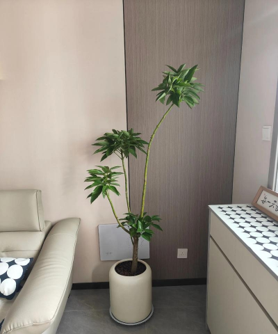 如果客厅有空调或暖气,可以考虑放在通风良好但避免直射阳光的位置,如靠近门框或窗边但不正对阳光的地方,适合喜半阴的植物。
