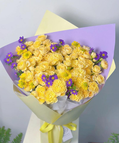 黄色多头玫瑰养花