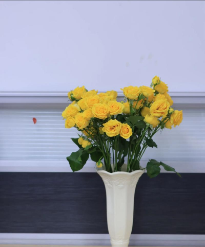 黄色多头玫瑰对光照需求较高,建议放在阳光充足的位置,每天至少6小时以上的直射阳光。如果光照不足,可能导致花色变淡或花头变黄。