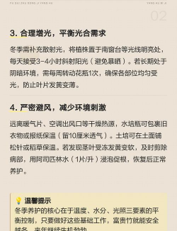 在冬天自己在家养花,需要注意温度、光照、水分和养分供给。以下是一些实用的建议,帮助你在冬季保持植物的健康生长:室内温度:保持在 10°C 至 20°C 之间,避免低于 5°C,以免冻伤根系。避免直射阳光:冬季阳光弱,尽量放在光线充足但非直射