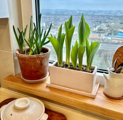单间厨房窗台养花