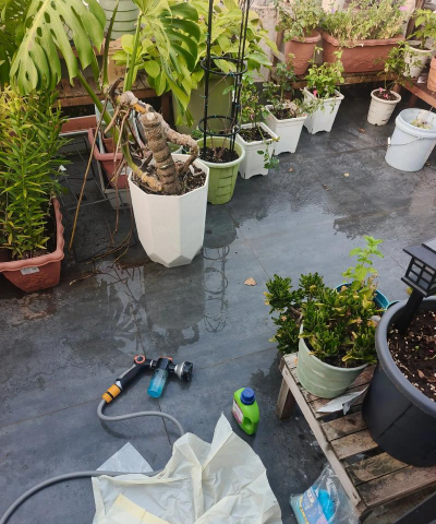 院子养花浇水难