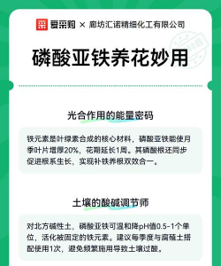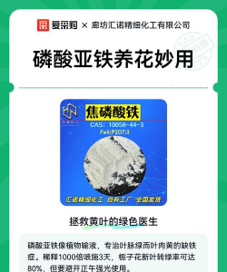 磷酸亚铁(FeSO₄·7H₂O)是一种含铁的肥料,常用于植物的生长,尤其适用于需要铁元素的植物,如绿叶植物、花卉等。以下是磷酸亚铁在养花中的使用方法和注意事项: