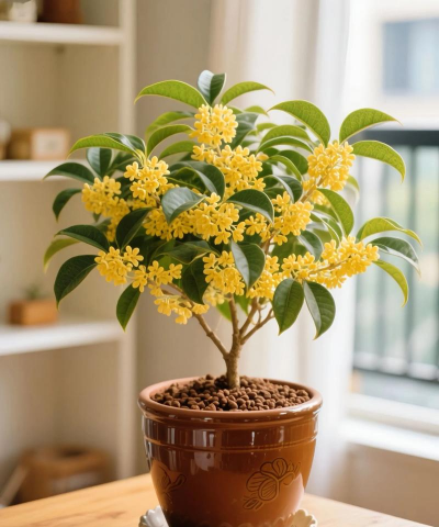 茉莉在秋季开花,香气浓郁,适合在庭院或阳台种植,注意保持土壤湿润。桂花