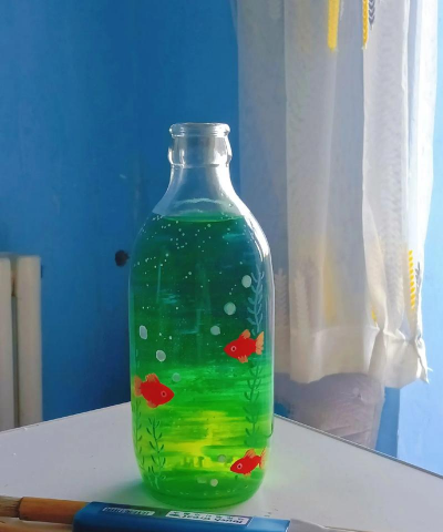 将鱼缸放置在花瓶中,花瓶作为装饰,同时鱼缸内可养小型鱼类,如金鱼、热带鱼等。
