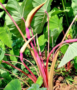 芋头:又称芋类,属于天南星科植物,根茎部分可食用,常用于烹饪。芋头有多种品种,如红芋、白芋、紫芋等,适合种植在湿润、排水良好的土壤中。