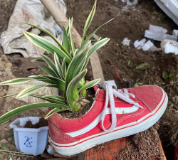 将旧鞋进行改造,如用鞋底作为花盆,鞋面作为装饰,形成独特的花盆造型。