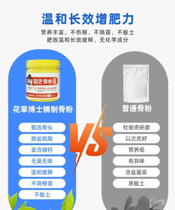 - 使用方法:骨粉通常作为基肥使用,可与土壤混合,或作为追肥使用。