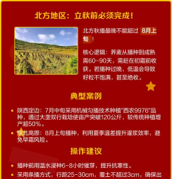 四、适时播种荞麦性喜冷凉湿润,苗期喜暖,花期喜湿。根据这一生理特点,针对本地气候,掌握“秋荞霜前收”的原则,选择最佳播期。一般6月末7月初播种较为适宜。