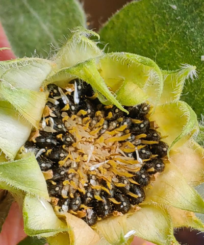 - 将葵花子皮晒干后,混入花盆的土壤中,作为养分补充。