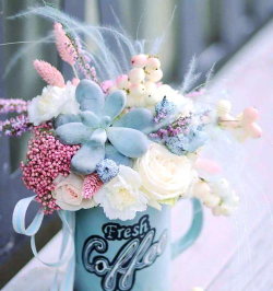 多肉植物因其独特的形状和颜色,非常适合在杯子中种植。选择一些小巧的多肉,如仙人掌、芦荟或小熊花,可以打造出精致的花艺效果。