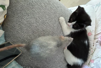 如果花枝鼠和猫同时存在,应确保它们的饮食和生活环境分开,避免交叉感染或健康问题。