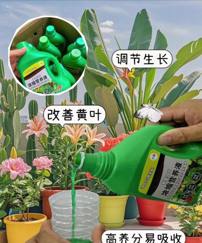 市面上有多种营养液,如“花多多”、“花多多B”等,适合不同植物需求,可以根据植物种类选择。自制营养液: