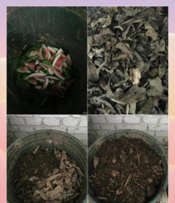 将厨余垃圾(如菜叶、果皮、咖啡渣、茶叶等)与枯叶、草木灰、腐熟的堆肥混合,放在阴凉通风的地方堆肥,经过一段时间后即可制成有机肥。