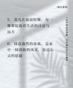 默默养花文案短句伤感 一花一世界,一叶一春秋 花开花落,岁月无声 静默守候,时光流转 花落知秋,心随景远 无声绽放,静待春归 花影摇曳,心绪难平 一寸光阴一寸花,静待花开时 花开花落,岁月如歌 静默中绽放,无声处见花 花