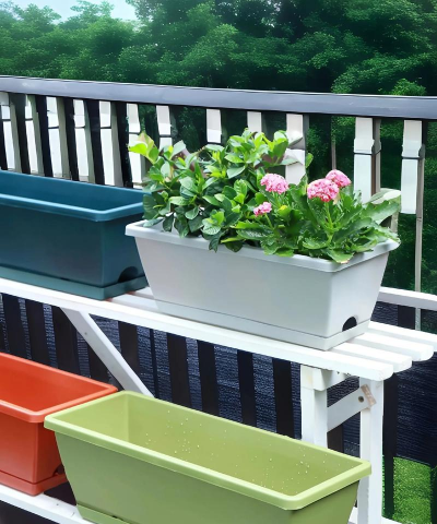 方盆子可以搭配不同颜色和材质的花盆,提升阳台的美观度。