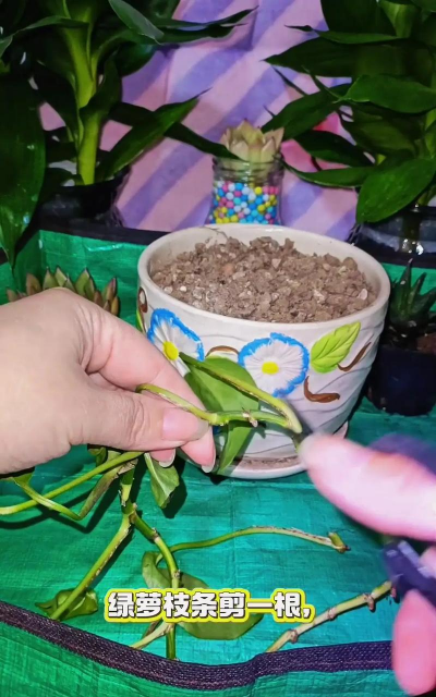 适当修剪绿萝的枝条可以促进新芽生长,帮助它结藤。