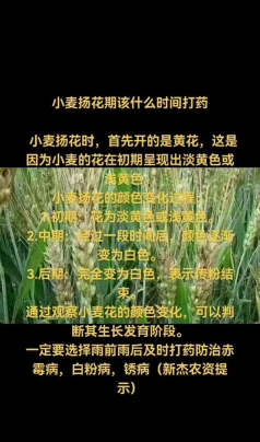 施肥:扬花期是小麦生长的中后期,可适当追施氮肥,以促进植株生长。但需注意不要过量,以免造成肥害。