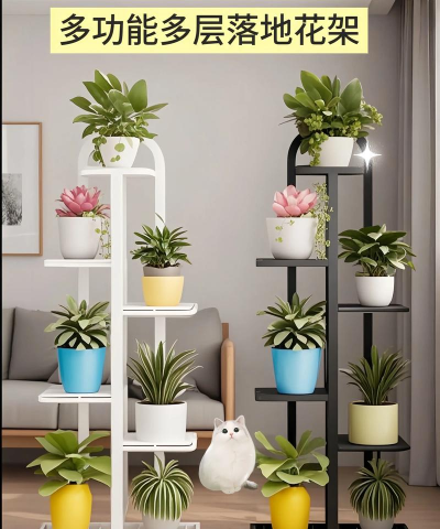 金属大花架:耐用且易于清洁,适合养花量较多的客厅,适合养多肉、盆栽等植物。