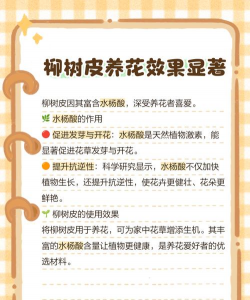 柳树皮在养花中可以作为一种天然的有机材料,用于改善土壤结构、增加透气性或作为肥料。以下是使用柳树皮养花的常见方法: