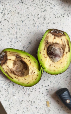 表面出现霉斑:变质的牛油果表面可能会出现霉斑或发黑的痕迹。
