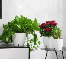 选择带有排水孔的花盆,避免积水。同时,可以使用节水盆器或滴灌装置,减少浇水频率。
