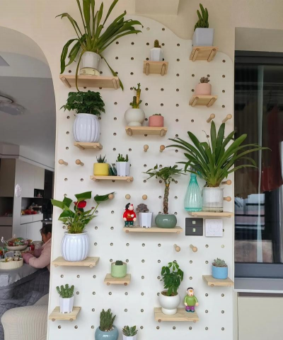 洞洞板适合播种或移栽小植物,注意不要将植物根部埋得太深,保持适当的深度。浇水与光照