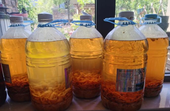 发酵完成后,将液体过滤掉固体残渣,保留液体作为酵素肥料。