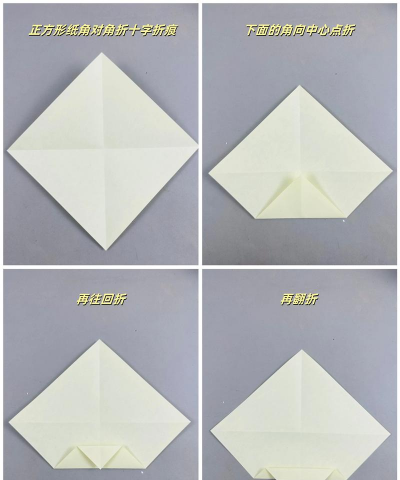 将纸张的四个角向中心折,形成一个正方形。折出形状