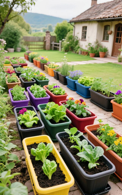 - 使用花盆、菜箱、种植箱等容器,适合空间有限的庭院。