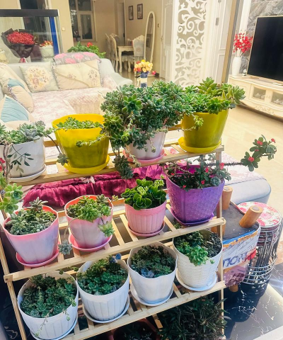 在桌面放置花盆和植物时,可以考虑以下几种方式来营造一个美观、舒适的养花环境:材质多样:可以选择陶土盆、塑料盆、陶瓷盆等,根据花种和养护需求选择。排水性好:确保花盆底部有排水孔,避免积水烂根。大小适中:根据桌面大小选择合适大小的花盆,避免过大