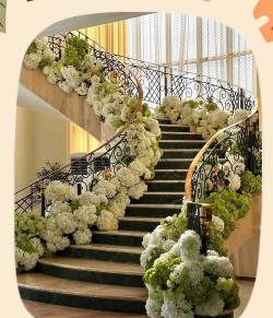 在楼梯周围安装攀爬架,让植物如藤本植物(如常春藤、紫藤)沿着架体攀爬,形成绿色屏障。