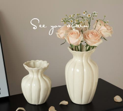 白色陶瓷花瓶具有简约、素雅的外观,适合多种花艺风格,无论是现代、复古还是自然风格,都能很好地搭配。这种花瓶能够提升整体的美观度,使花卉看起来更加整洁、优雅。